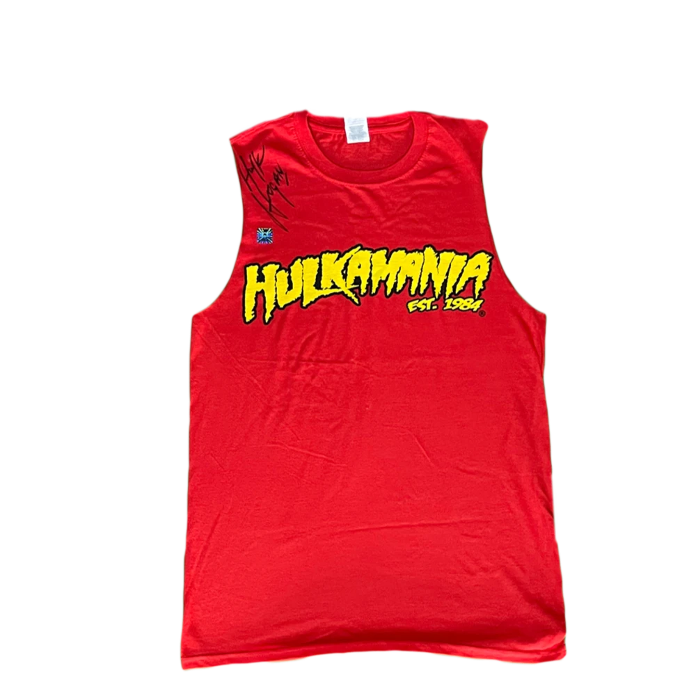 Hogan’s Beach Shop Autographed Red Hulkamania Cut Off Tank