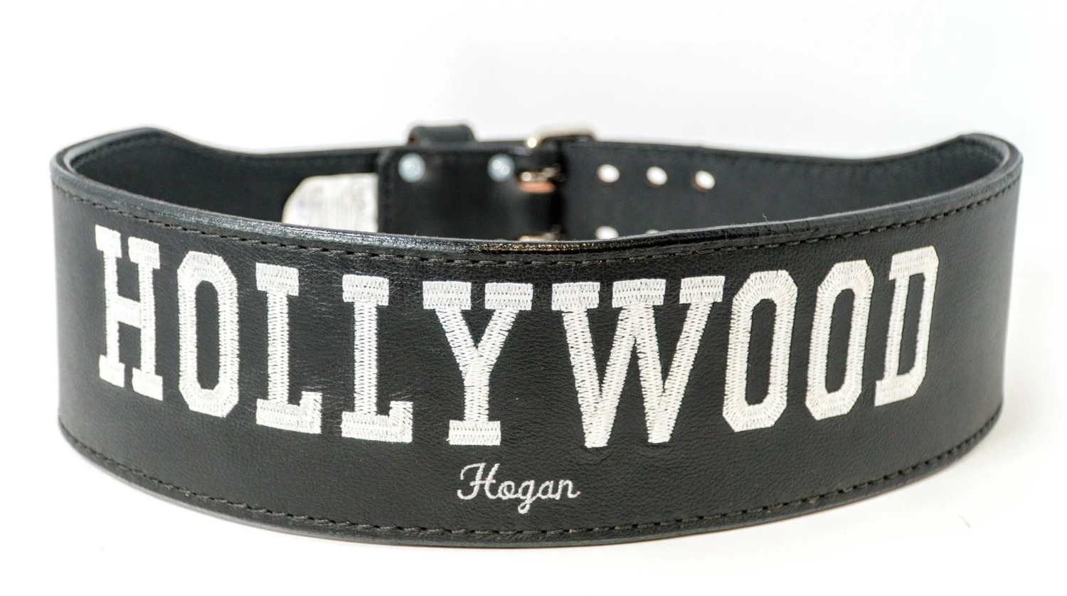 Custom Hollywood Hulk Hogan Weight Belt by Cardillo with Hollywood Hogan embroidered in the back.