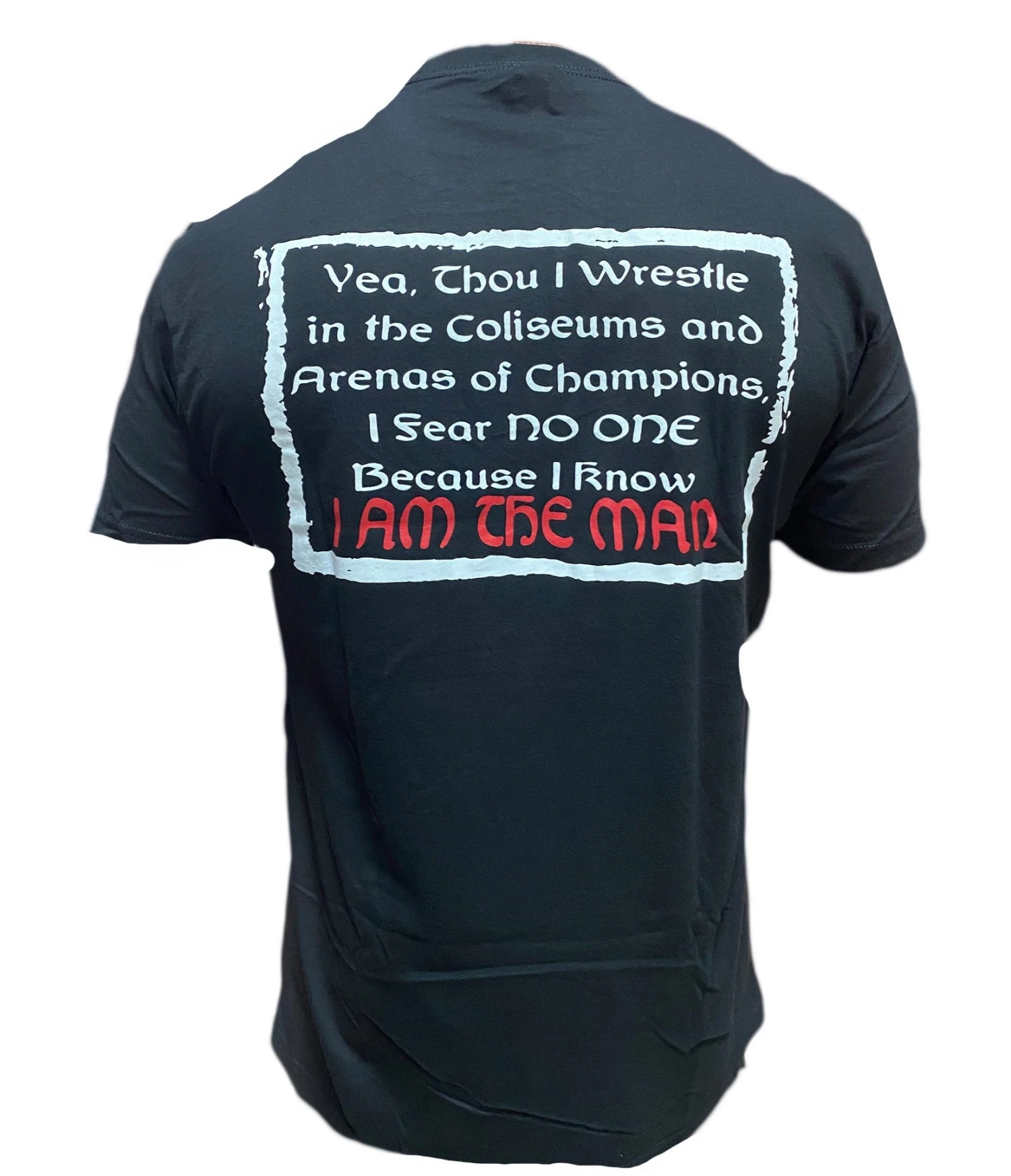 The Tribal Skull Hogan 4 Life T-Shirt is a black T-Shirt made by Next Level. It incorporates an unique design that is sure to impress.The back of the T-Shirt also has a quote that reads “Yea, thou I wrestle in the coliseums and arenas of champions, I fear NO ONE because I know I AM THE MAN”.