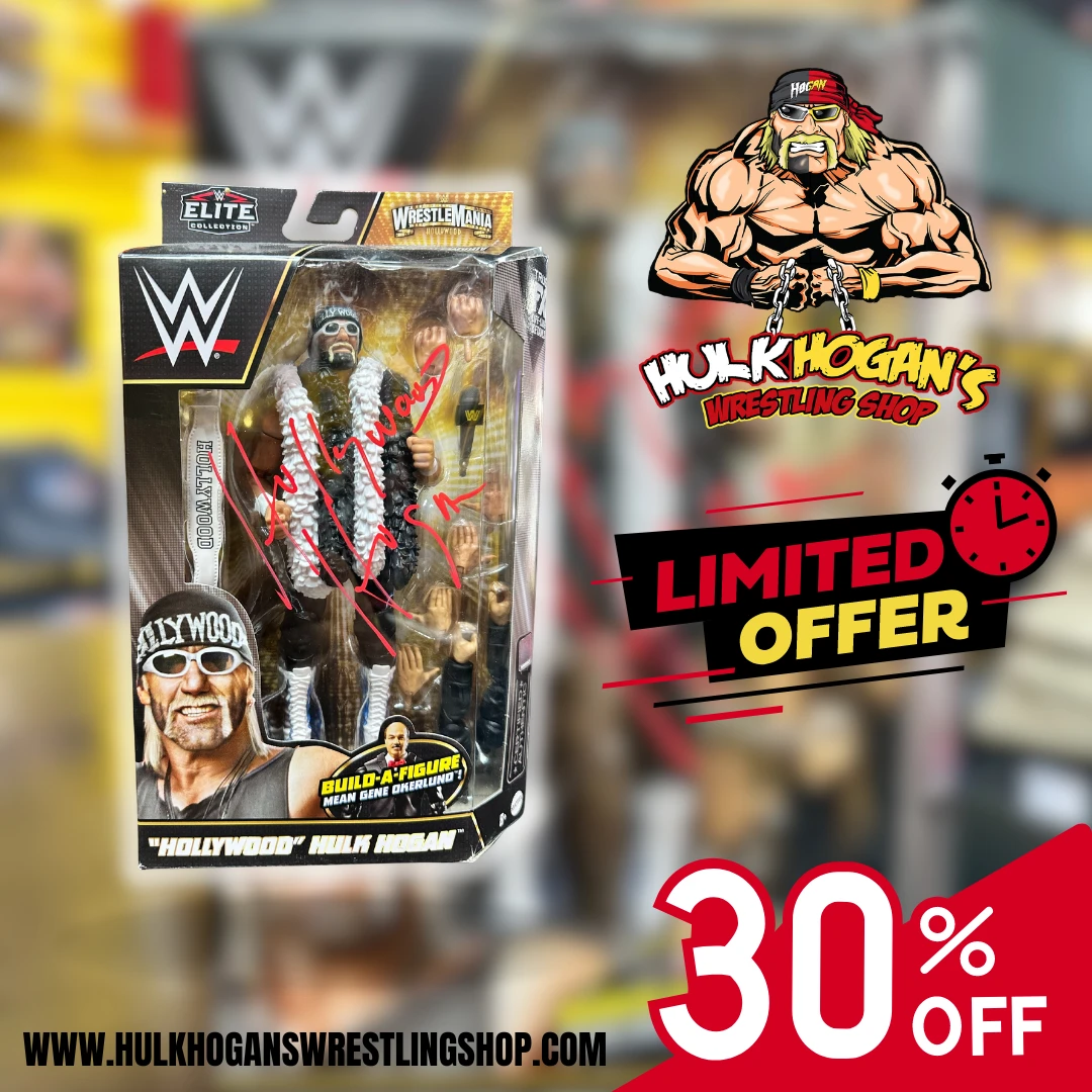 Hogan’s Beach Shop WWE MATTEL Hollywood Hulk Hogan Wrestlemania Elite Collection Action Figure, Multicolor Autographed